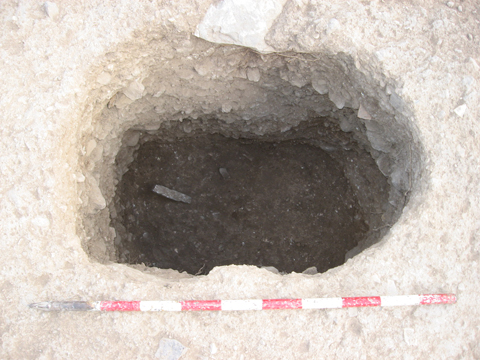 En el sondeo 2600 se continúa trabajando en el interior del pozo, retirando la UE 016. Es una tierra arcillosa, de color marrón grisáceo con abundante árido fino y piedras pequeñas y medianas. La cerámica que aparece está muy fragmentada, pero hay abundantes tejas. En la parte noreste aparece una unidad pegada a la pared del pozo, que puede considerarse un derrumbe de la misma. Este estrato parece ser bastante potente.