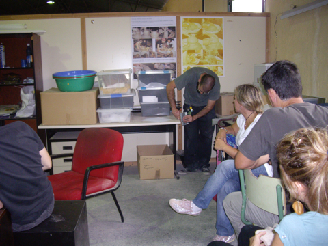 La jornada de hoy se ha centrado fundamentalmente en clases prácticas que tienen como objetivo el análisis y documentación de materiales arqueológicos. En este caso, el dibujo y la fotografía de cerámica. A lo largo del dia los alumnos, de la mano de Ángel González Escudero, han apredido a dibujar diferentes piezas, comenzando por las bases y aumentando de dificultad a medida que avanzaban en el trabajo. Tras las bases han dibujado asas, bordes y piezas decoradas.